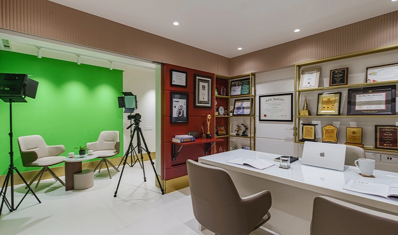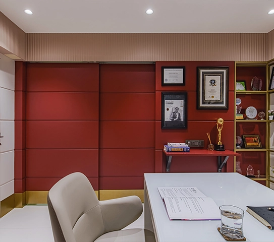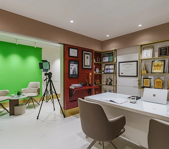 It is Dr. Basesh Gala of 39 Solutions who’s energy is the very reflection of this space! An incubator for new ideas and concepts, this office space not only functions as a private office but also as a studio for recording video’s that motivate and encourage people on the journey of entrepreneurship. The space being utilized for multifunctional purposes, each sq.ft. of the 200sq.ft. space is designed in an out-of-the-box approach.
