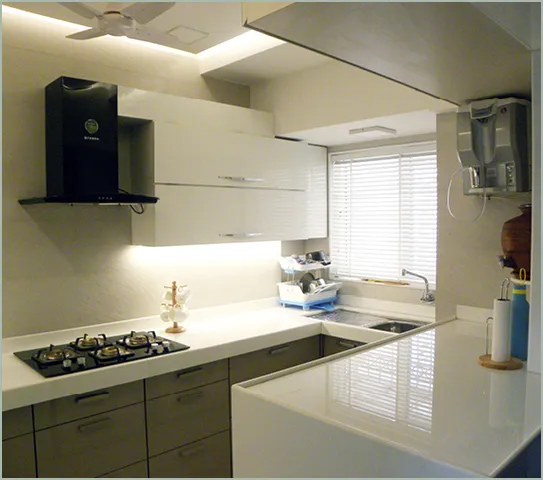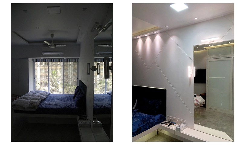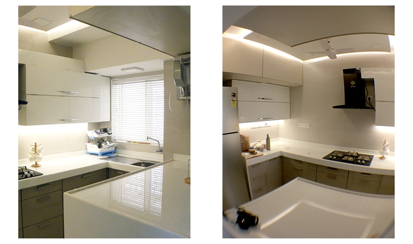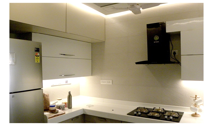 The apartment is located on the upper floors of a residential tower in Mumbai’s suburban neighborhood. Keeping maximum space utilization and minimalism as the design brief “The spatial concept, therefore, has been to work with an open plan approach, allow unobstructed lines of sight across the full width of the home, and utilize every sq.ft. in a manner to allow for flexible combinations of spaces, The studio apartment is home to a young couple, wanting a simple and clean design adding fresh feel to the house.
