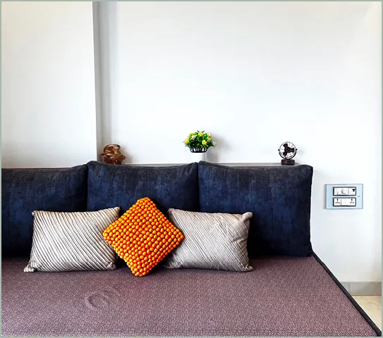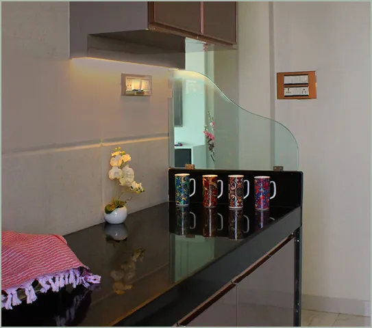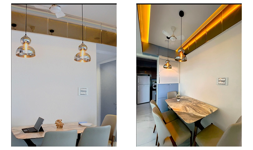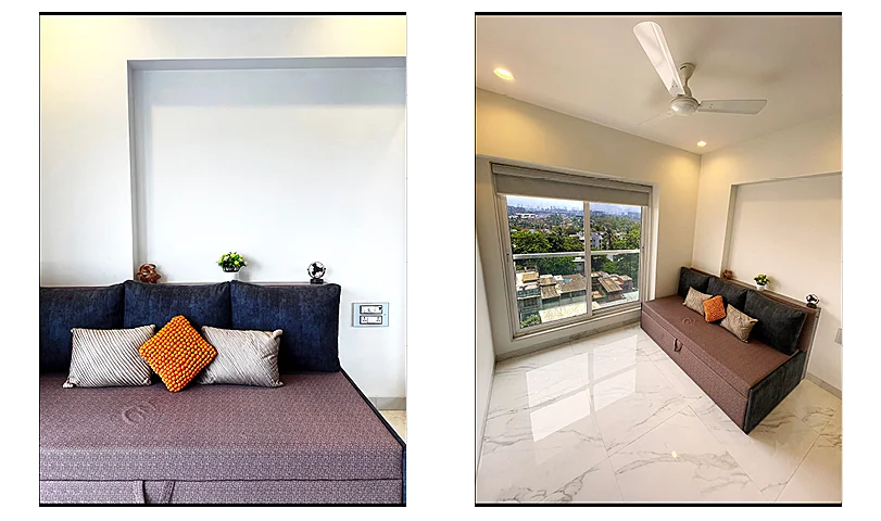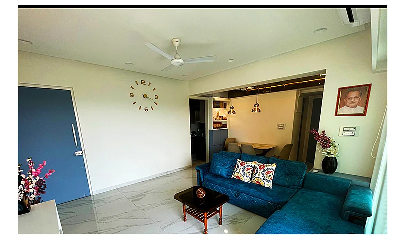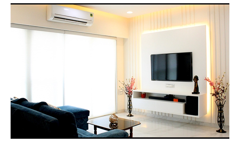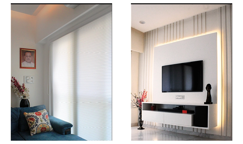 All white, dotted with few clusters of colors, the home quite fittingly seems to be located between tree-lined avenues on all sides. Spread across 850-square-feet, the home has an open layout, ample natural light and an assimilation of minimal aesthetic and seems to champion the cause for urban living. Drawing from its surroundings, the home—belonging to a family of four—has a subtle sophistication about it. The surroundings were indeed the starting point of the design: “The beautiful green vistas provided the perfect setting for this home. The client's preferences for an open, light and airy space without compromising on the storage led to an amalgamation of the modern and contemporary. All design elements were created to complement the natural light that streams in through the French windows in all rooms.”