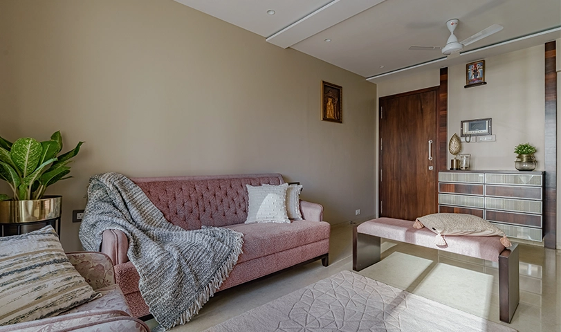 Initiated as a renovation project to create additions and alterations, this 1,000sqft home in Ghatkopar, Mumbai rolled on to a full-fledged makeover, completely brand new. Mr. & Mrs. Sangoi approached us to create an anthropometrically functional contemporary home with a subtle and natural material palette, which we then meticulously planned to the tee, confident that we would give them exactly what they wanted if not more.