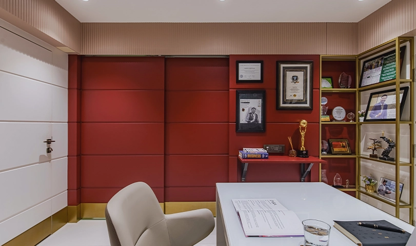 It is Dr. Basesh Gala of 39 Solutions who’s energy is the very reflection of this space! An incubator for new ideas and concepts, this office space not only functions as a private office but also as a studio for recording video’s that motivate and encourage people on the journey of entrepreneurship. The space being utilized for multifunctional purposes, each sq.ft. of the 200sq.ft. space is designed in an out-of-the-box approach.